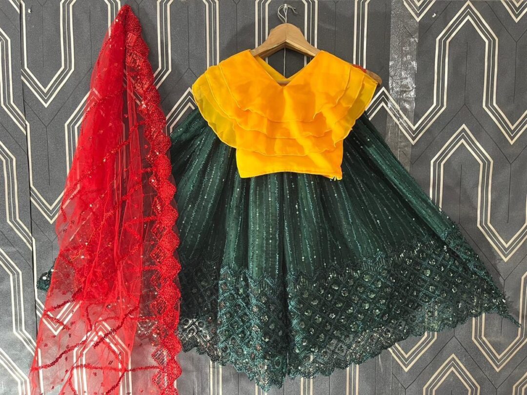 Get ready to wear adorning this Colorful lehenga’s in soft net material beautifully designed with thread and sequins embroidery work.