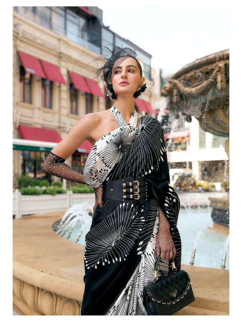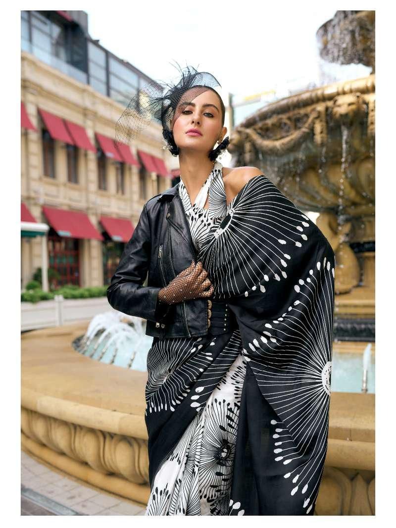 Graceful Ajarakh printed satin crepe saree with a rich fall and smooth finish. Perfect for festive and semi-formal occasions.