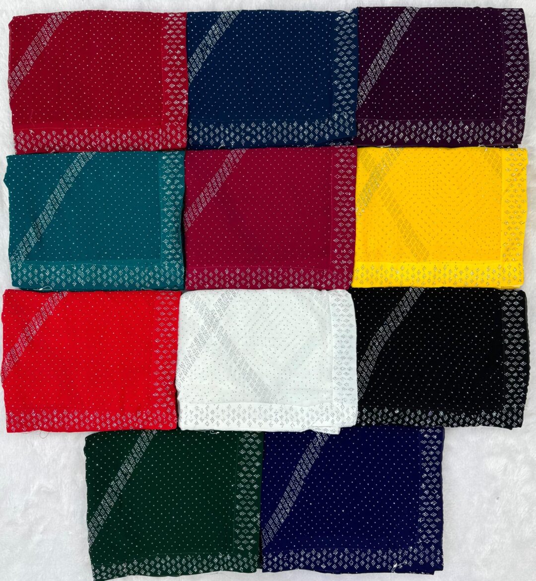 Super hit blooming saree with full heavy Swarovski work and fancy border. Comes with matching running blouse, available in 8–10 stunning colors.
