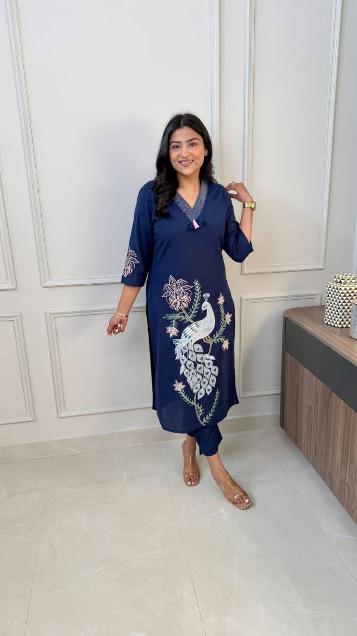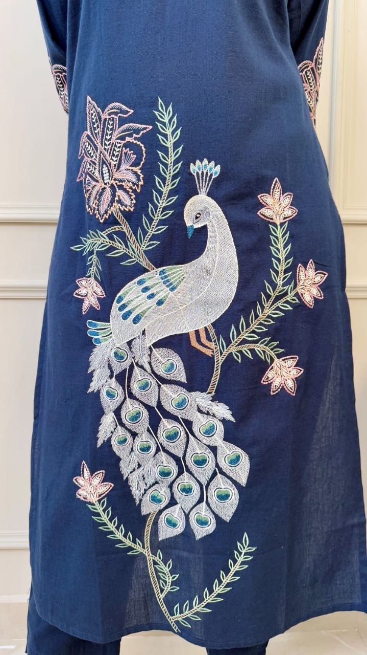 Elevate your ethnic wardrobe with this pure cotton embroidered Kurti and Pant set. Made from premium 60/60 fine cotton, it’s comfort and elegance in one.