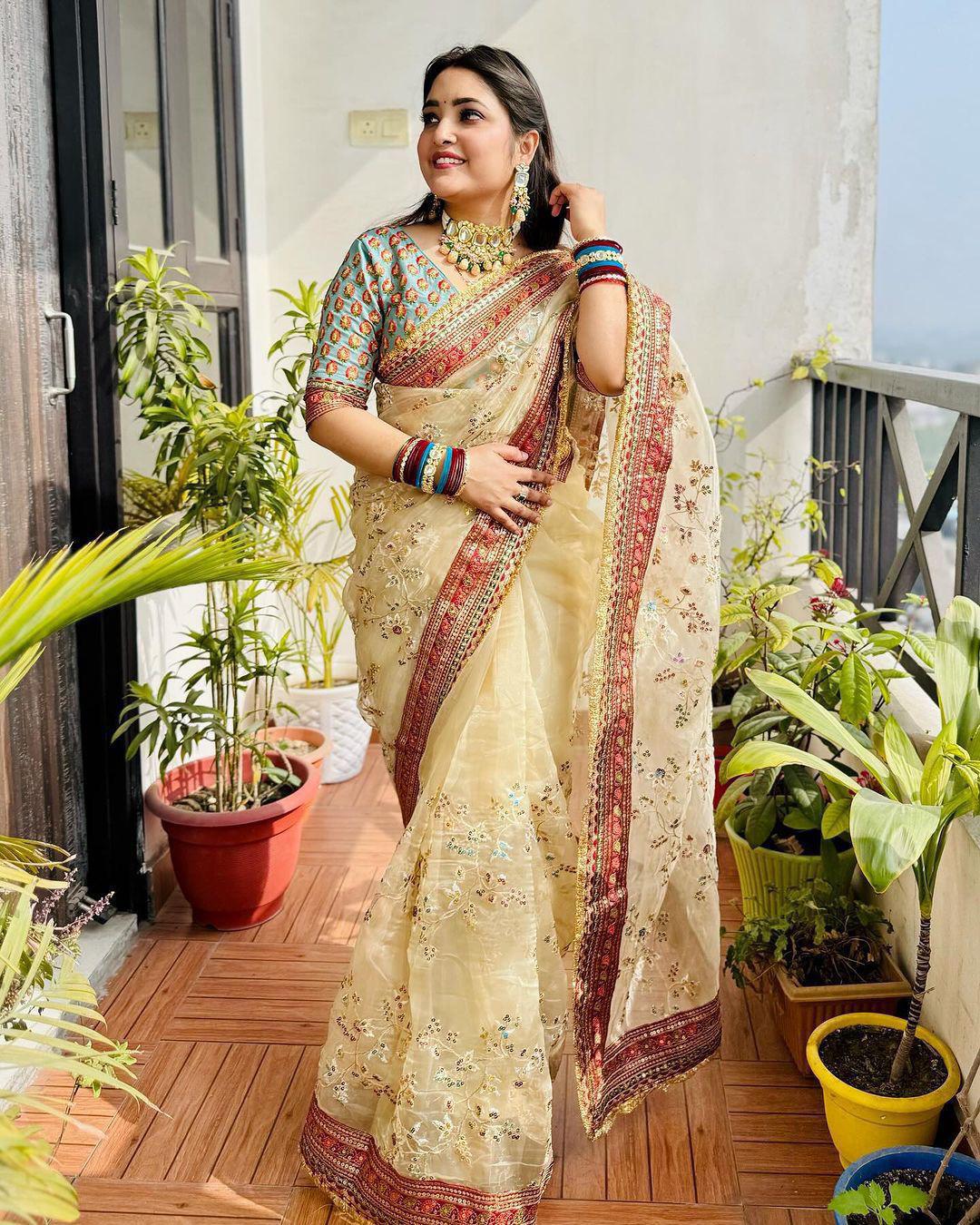 Pure Soft Organza Silk Saree with Multicolour Sequin Embroidery & Designer Blouse